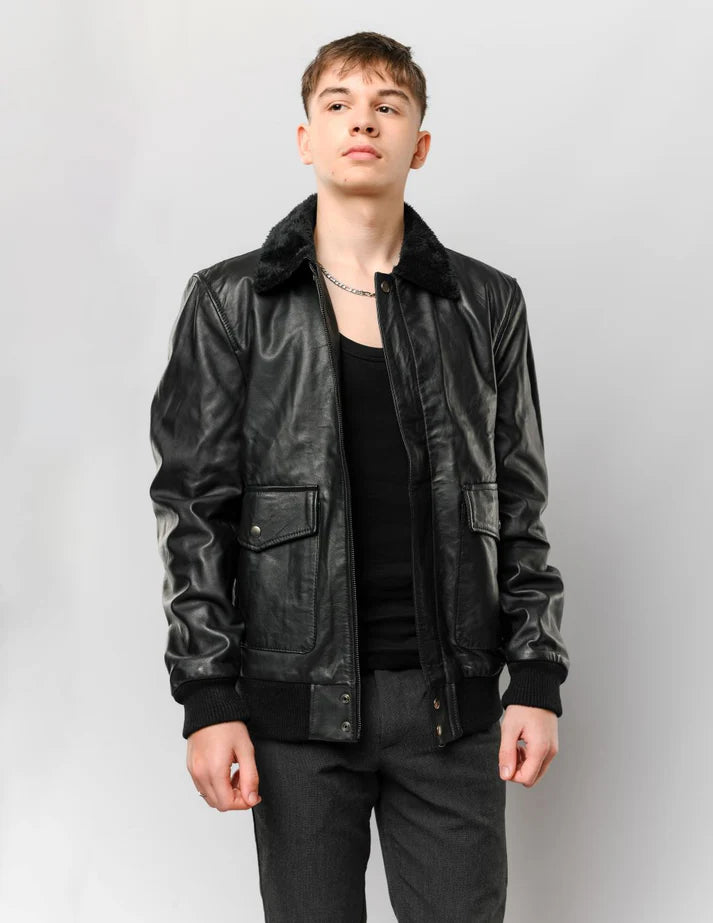 Blouson aviateur en cuir homme noire